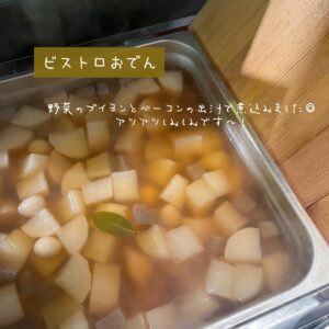 野菜のブイヨンと、ベーコンの旨みがたっっぷり染み込んでます🤤ローリエもふわっと香る洋風おでん!