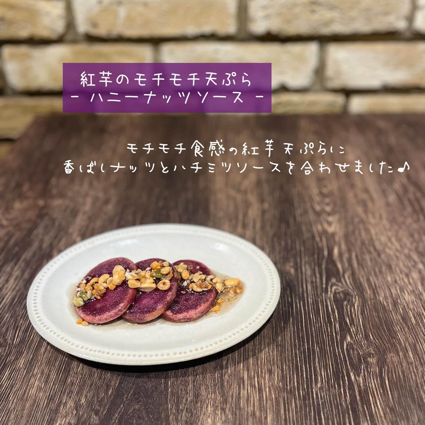 【紅芋のモチモチ天ぷら~ハニーナッツソース~】@桜木町/みなとみらい/バル/ワイン/ハッピーアワー/飲み会/デート/ディナー/1人飲み
