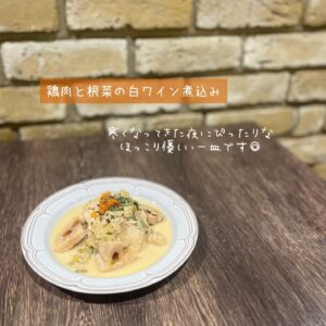 本日は【鶏肉と根菜の白ワイン煮込み】のご紹介です!