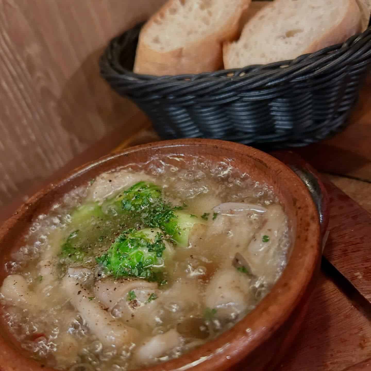 アツアツのアヒージョとバケットが食欲をそそりますよね‥‥!