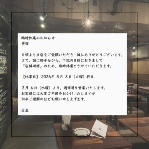[休業日]2026年3月3日(火)終日